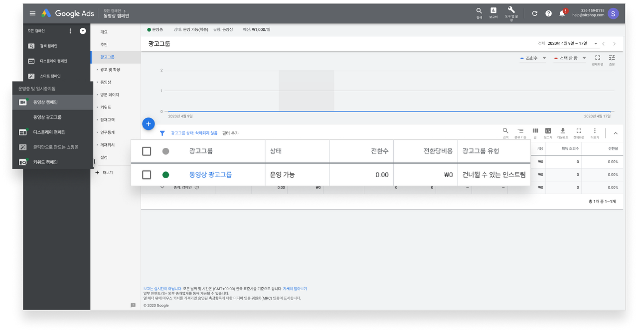 생성된 캠페인, 광고그룹은 구글 애즈 대시보드에서 확인할 수 있습니다.