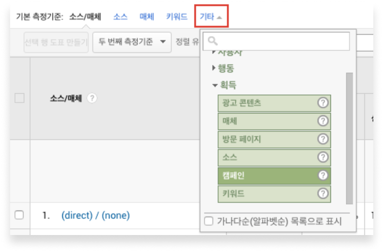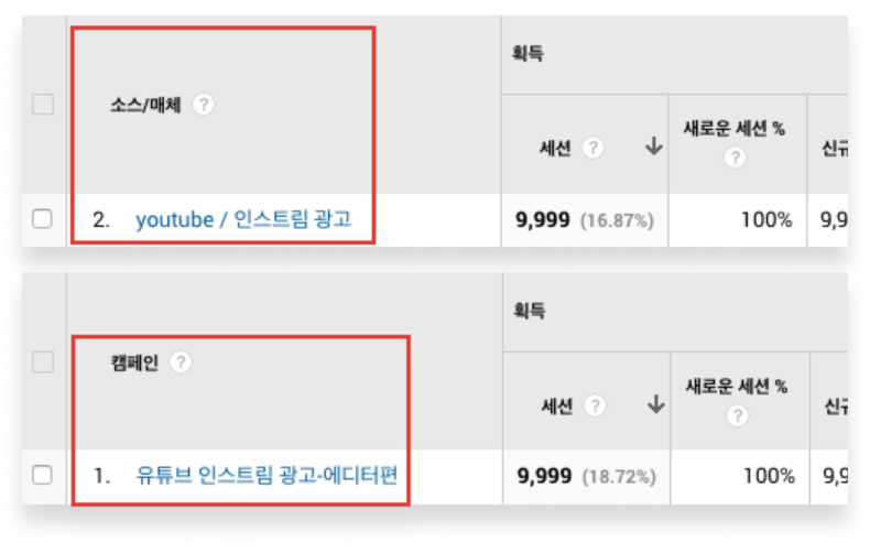 아래 예시는 위 과정을 통해 생성된 URL이 구글 애널리틱스에 어떻게 반영되었는지를 나타내고 있습니다.