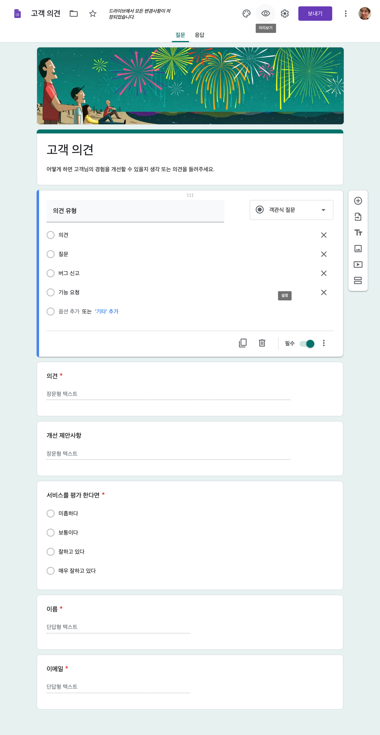 설문 조사를 활용하면 소통과 서비스의 질을 높일 수 있습니다. 설문 조사 양식을 빌린 주문서를 만들면 옵션이 매우 상세한 상품의 주문에도 사용할 수 있습니다. 이를 제작하기 위해 설문 조사 플랫폼 중 하나인 '구글 폼(Google Form)'을 활용한 설문지 사용법을 알려드립니다.