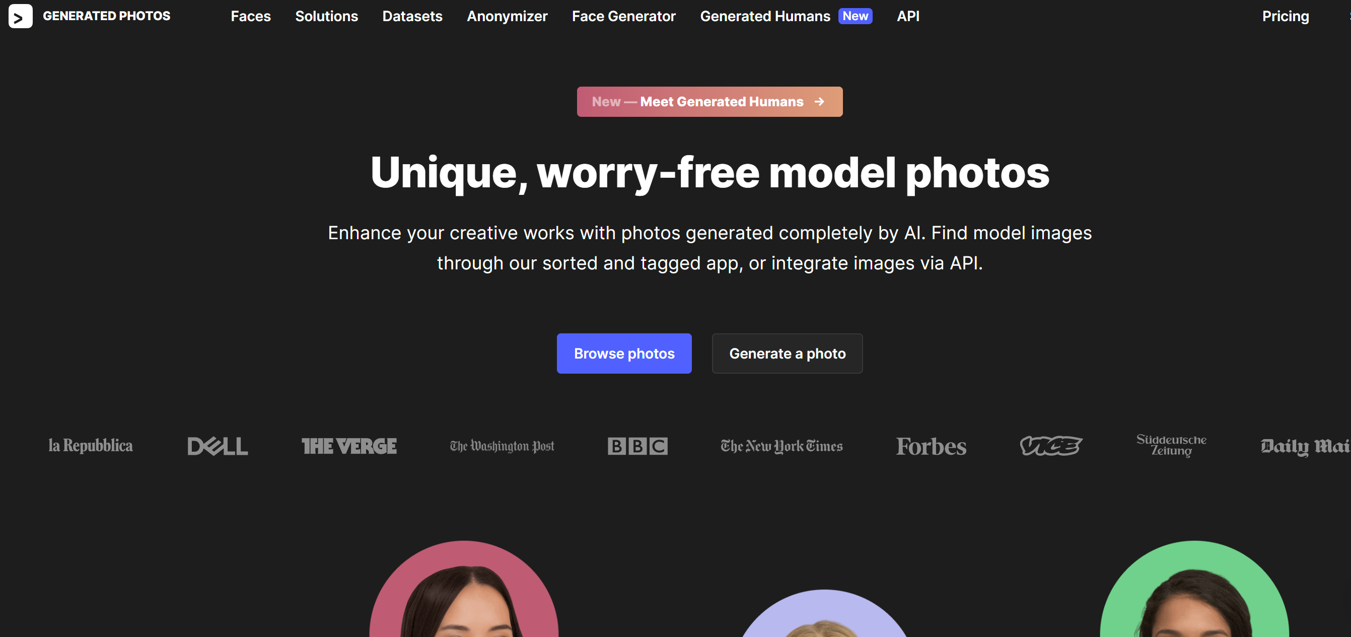 - Generated Photos (https://generated.photos/): Generated Photos는 AI가 생성한 고품질의 인물 이미지를 제공하는 사이트입니다. 무료로 물론 이미지를 다운로드할 수 있습니다.