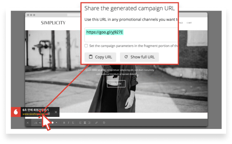 1-1. 아래 주소로 접속하여 URL을 생성할 수 있습니다. 생성된 URL이 너무 길면 간단한 버튼 클릭 한 번으로 짧게 줄일 수 있습니다.
