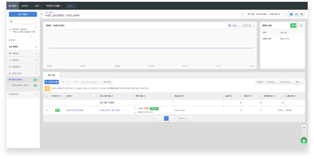 계약 내용 확인 광고그룹에 등록된 키워드 및 소재를 확인합니다.