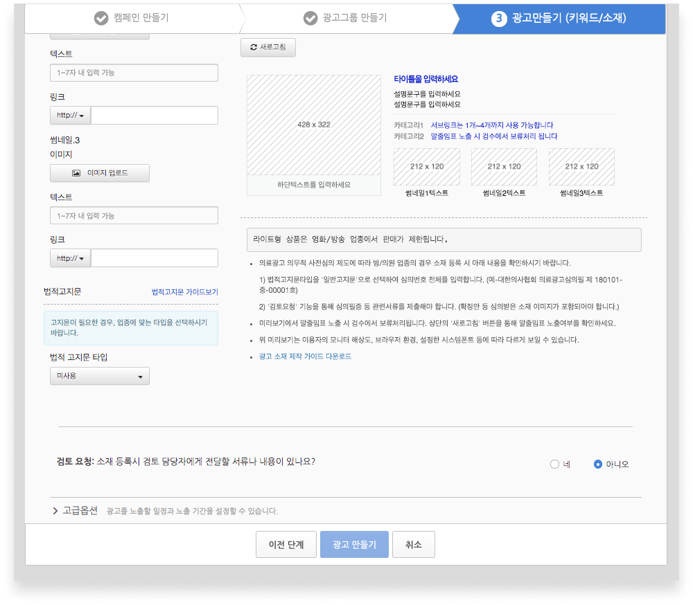 모든 입력이 끝나면 '광고 만들기' 버튼을 클릭합니다.