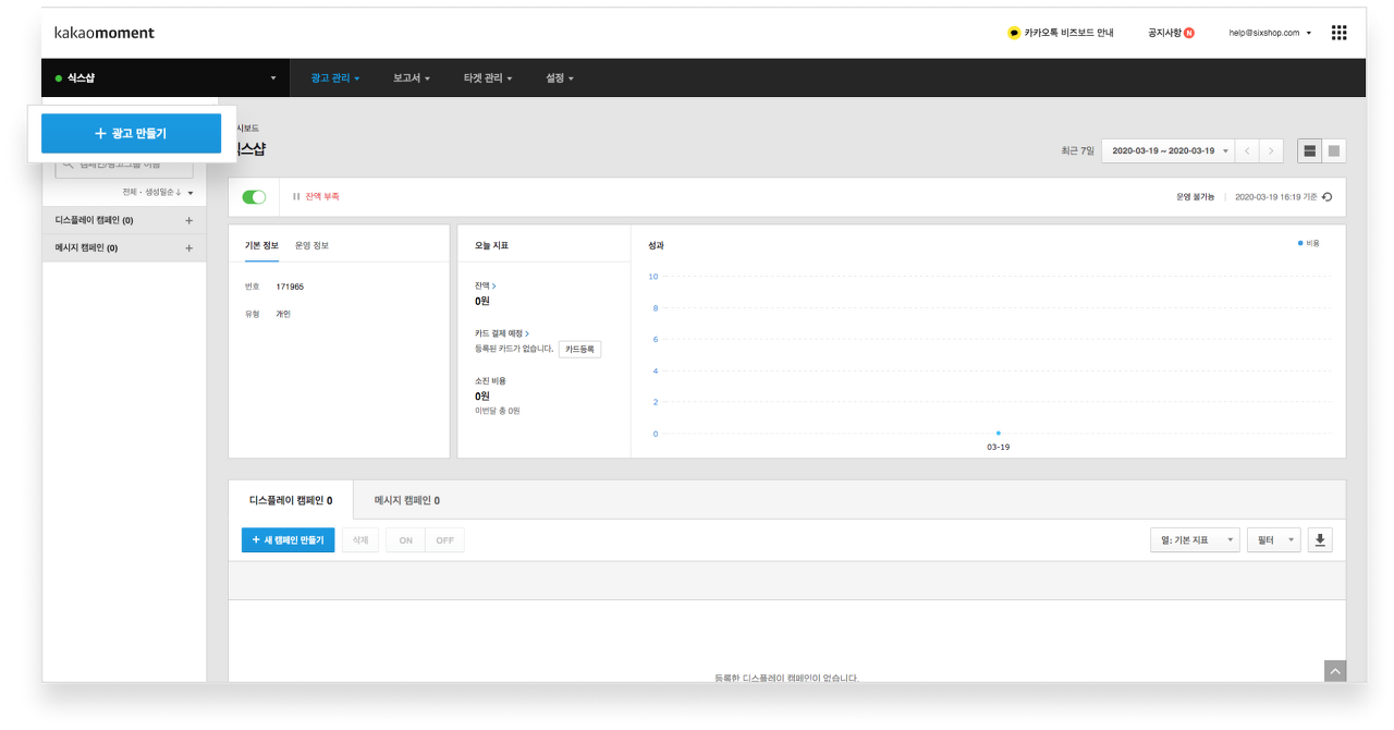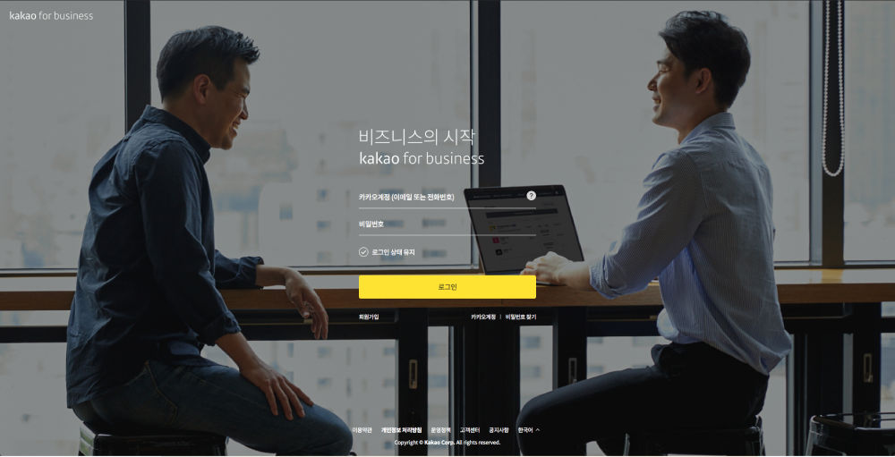 광고주 계정이 없다면 '카카오 모먼트 광고 센터'에 가입합니다. 이미 광고주 계정이 있다면 기존 계정으로 진행해도 무관합니다.