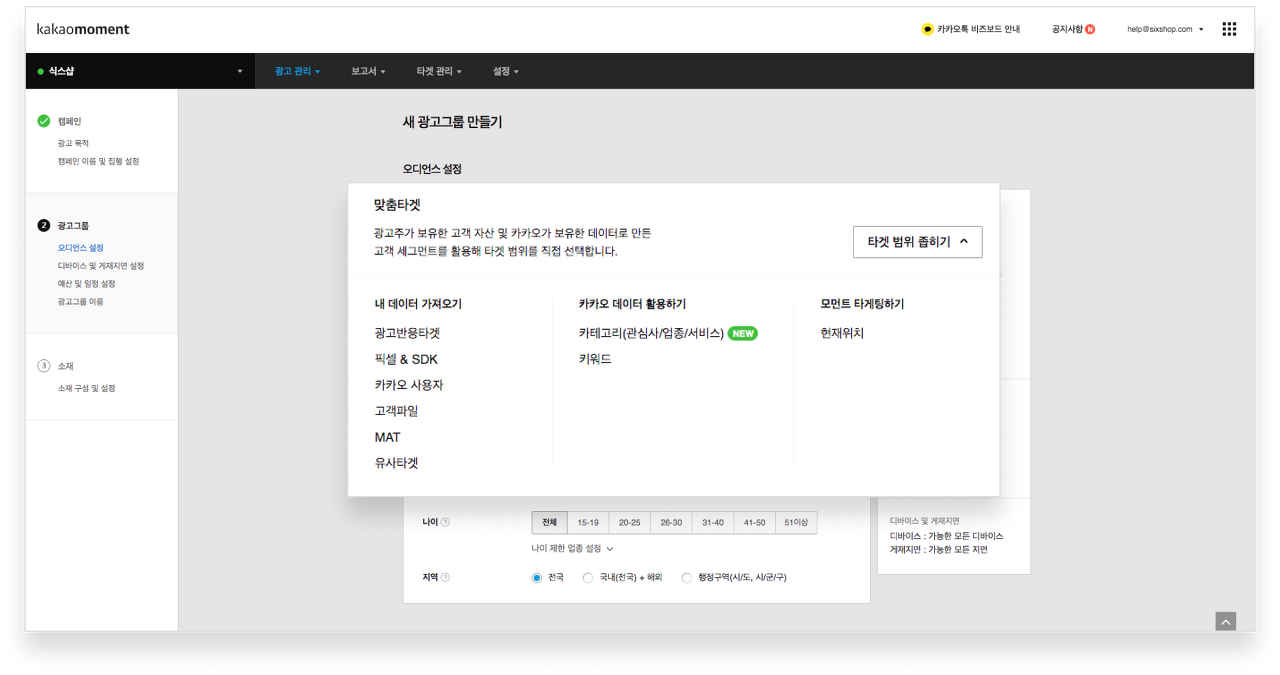 내 데이터 가져오기 카카오 모먼트의 오디언스 설정은 광고주의 고객정보를 토대로 연관도 높은 사람을 타겟으로 설정
