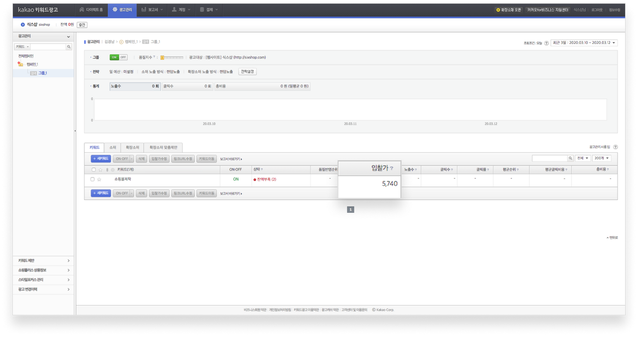 적용된 입찰가는 광고그룹 키워드 목록에서 확인 가능합니다. 자동입찰은 보통 1분~30분 내 반영이 되지만, 광고 시스템 내 전체 광고 변경 건에 따른 시스템 부하 정도에 따라 더 많은 시간이 소요될 수도 있습니다.