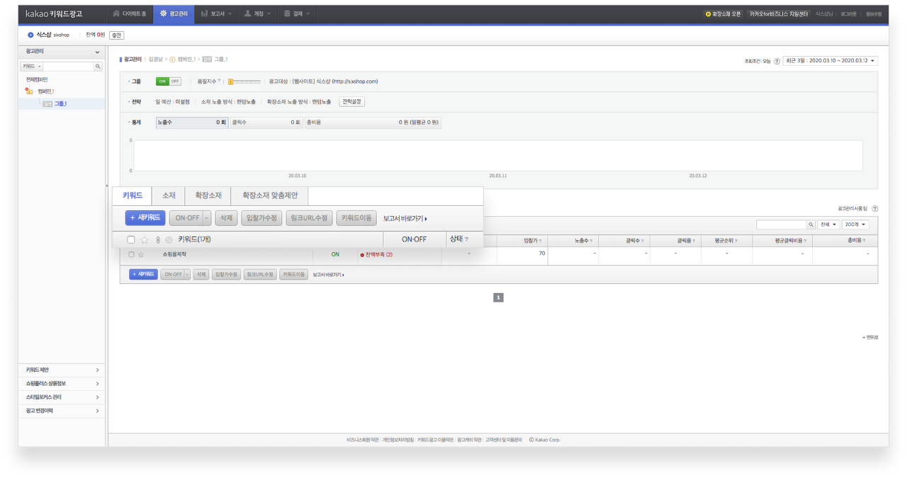 다양한 방식의 키워드 확장을 통해 생성한 키워드는 '광고관리''광고그룹'에서 '+ 새키워드'를 통해 추가 할 수 있습니다.