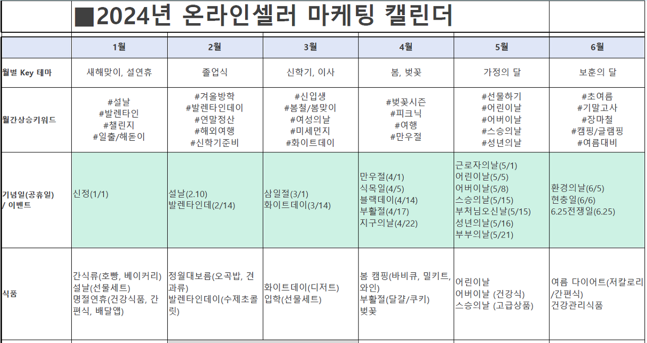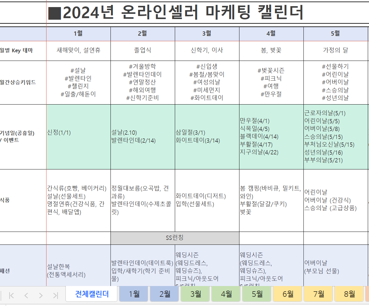 2024년 온라인셀러 마케팅 캘린더