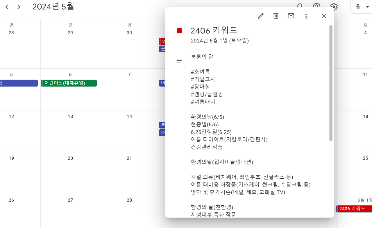 #5월달 샘플 및 6월달 키워드 샘플